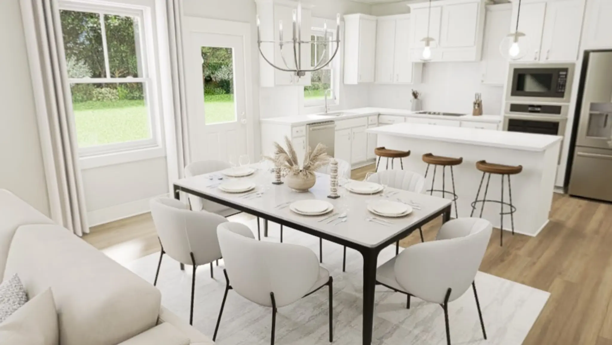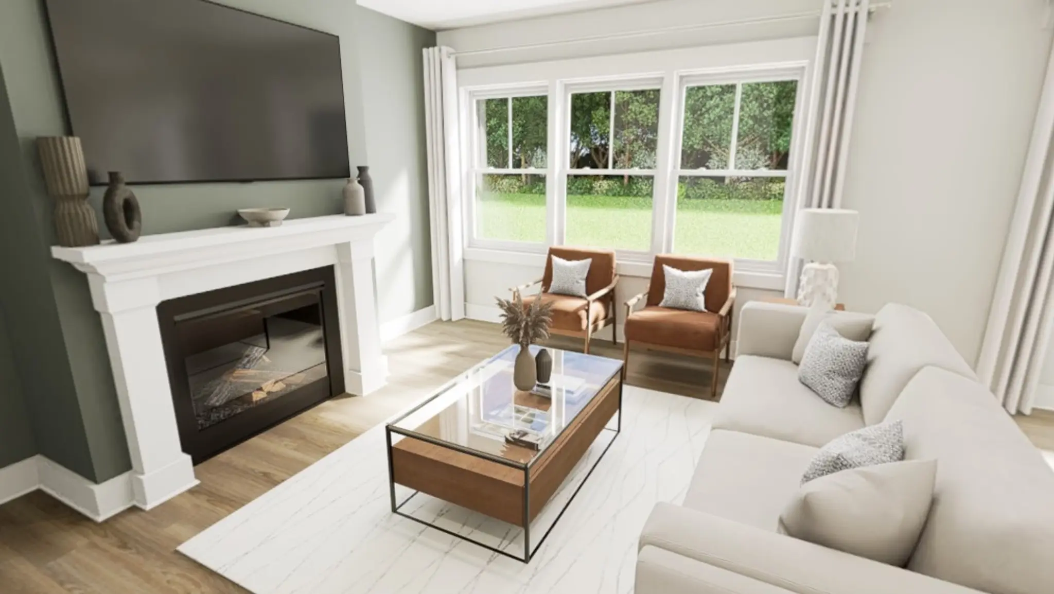 From the moment you walk in the Happy plan at 4256 Motisheri Cove, you're greeted by warm, modern charm thanks to the Classic White Button Down interior package, offering soft tones, bright finishes, and timeless touches that elevate every room. The kitchen stretches across the width of the home and features a gourmet layout with a gas cooktop and quartz countertops, seamlessly opening into the family room where a cozy fireplace awaits.