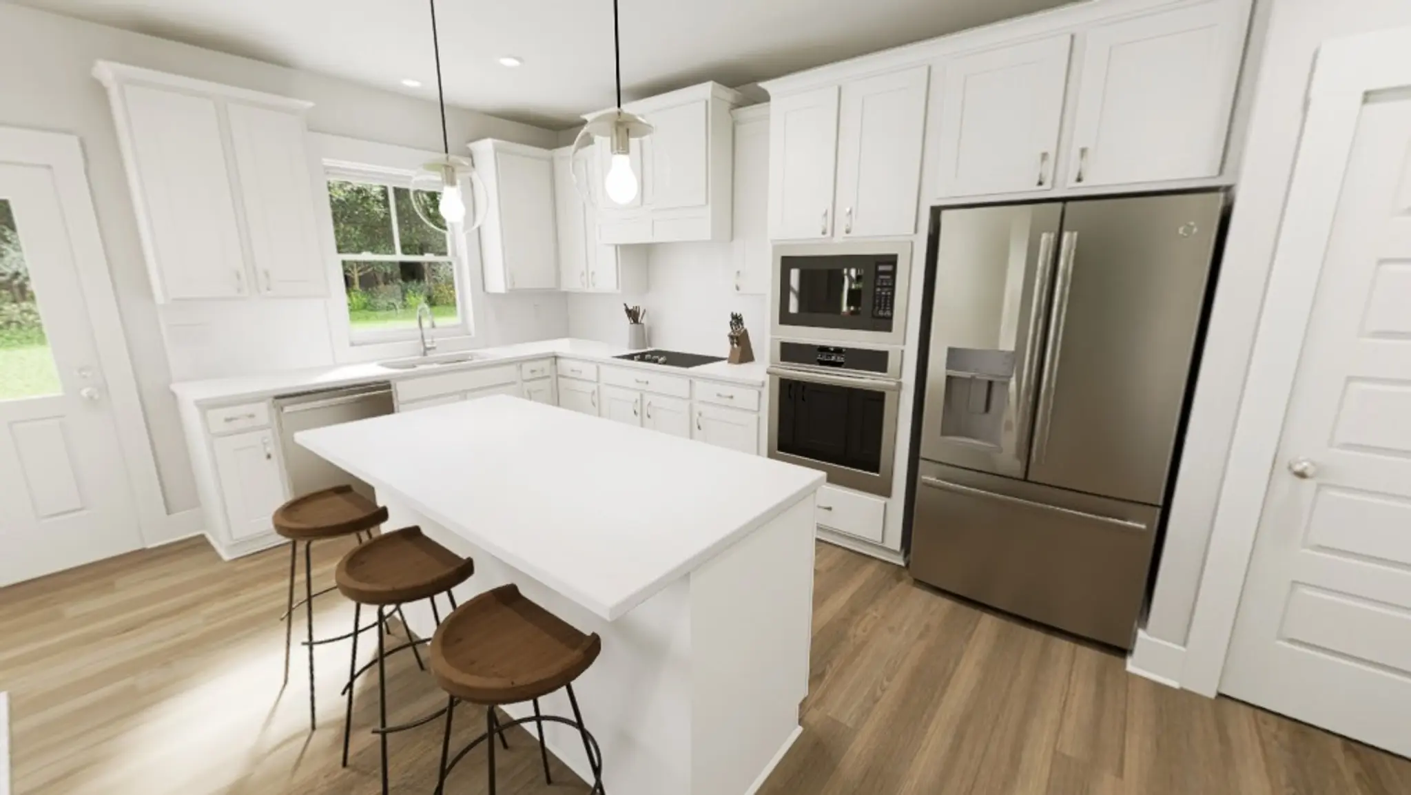 A private pocket office on the main floor offers the perfect nook for work or creativity, tucked away just enough to feel peaceful without being disconnected. Luxury vinyl plank stair treads create a cohesive, polished look throughout. Upstairs, you’ll find four bedrooms, including a spacious primary suite with a generous walk-in closet and a beautiful bath. An oversized dedicated laundry room keeps life organized.