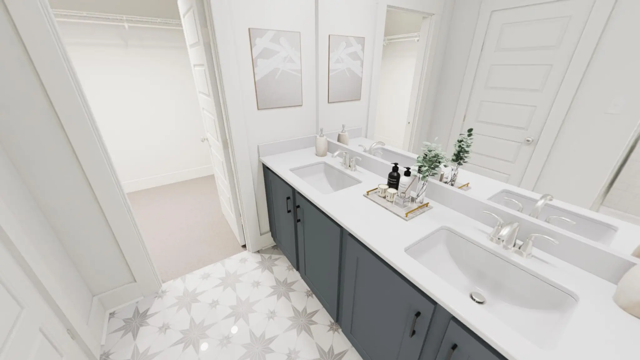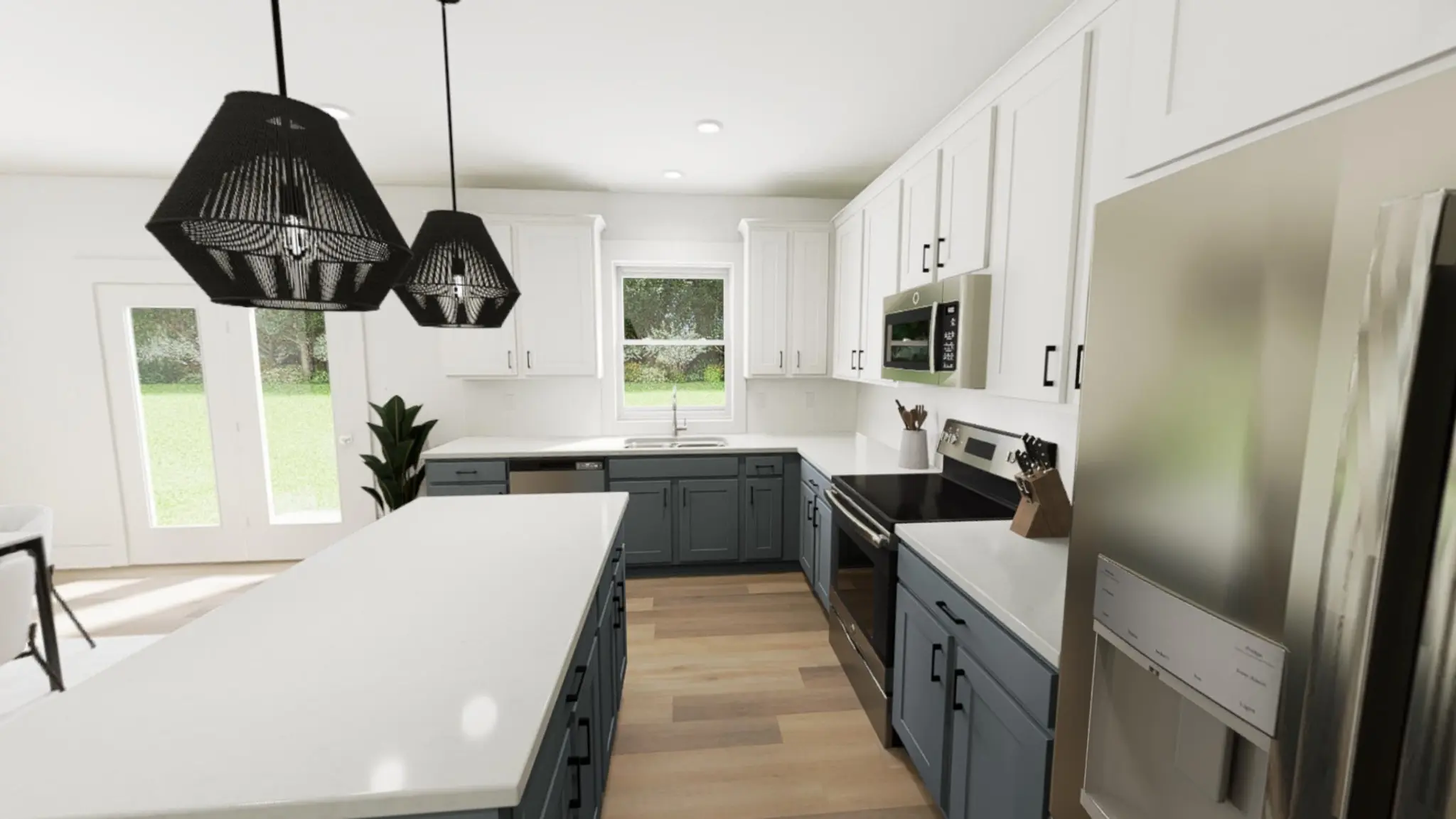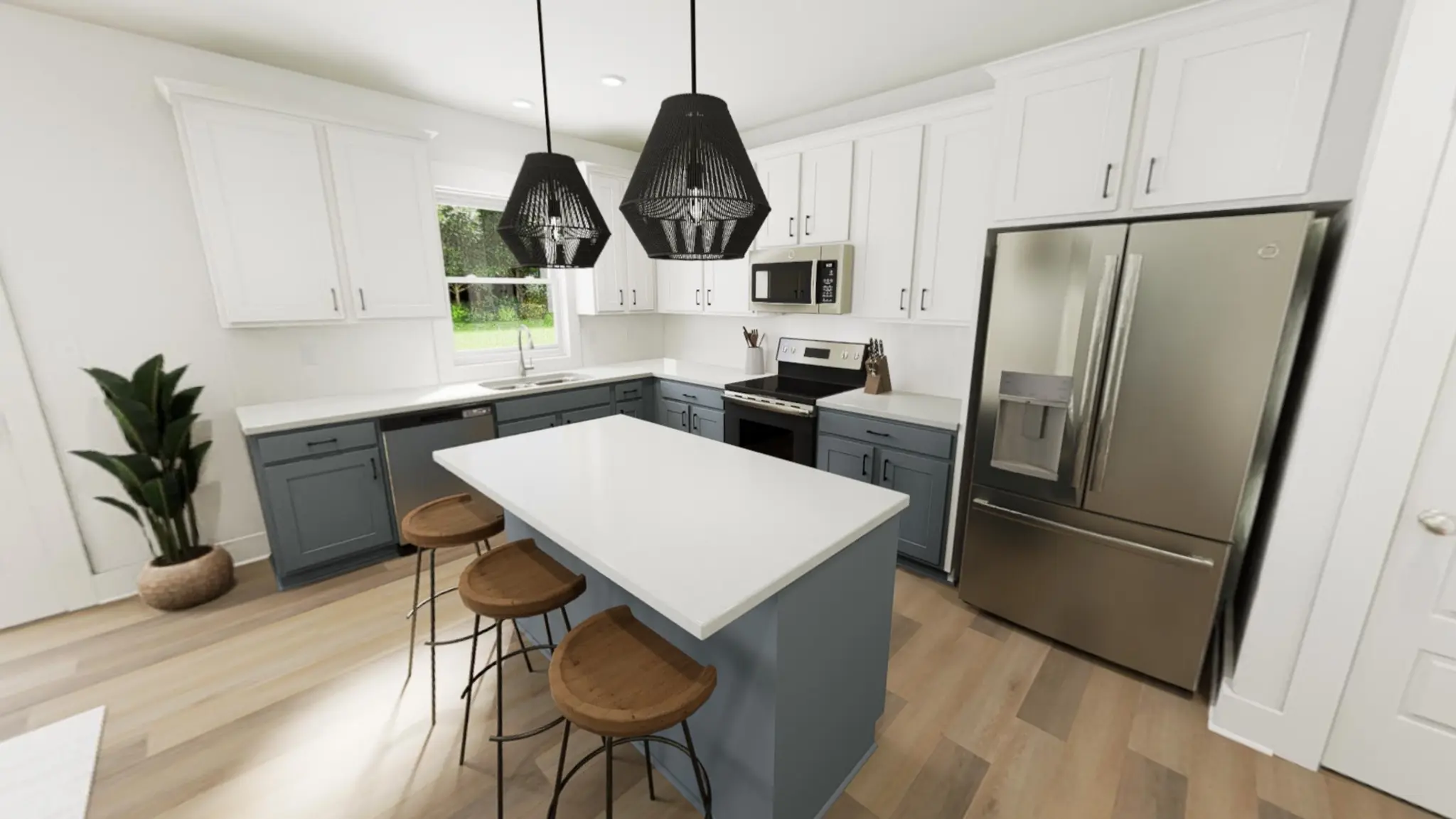 The Snoop & Martha interior package brings just the right mix of confidence and calm with two-tone cabinetry, sleek quartz countertops, and a herringbone backsplash. Accented walls in high impact areas add a touch of personality, with thoughtful upgrades - like soft-close drawers and upgraded lighting. The primary suite upstairs offers a peaceful retreat with a tiled shower niche, and generous walk-in closet.