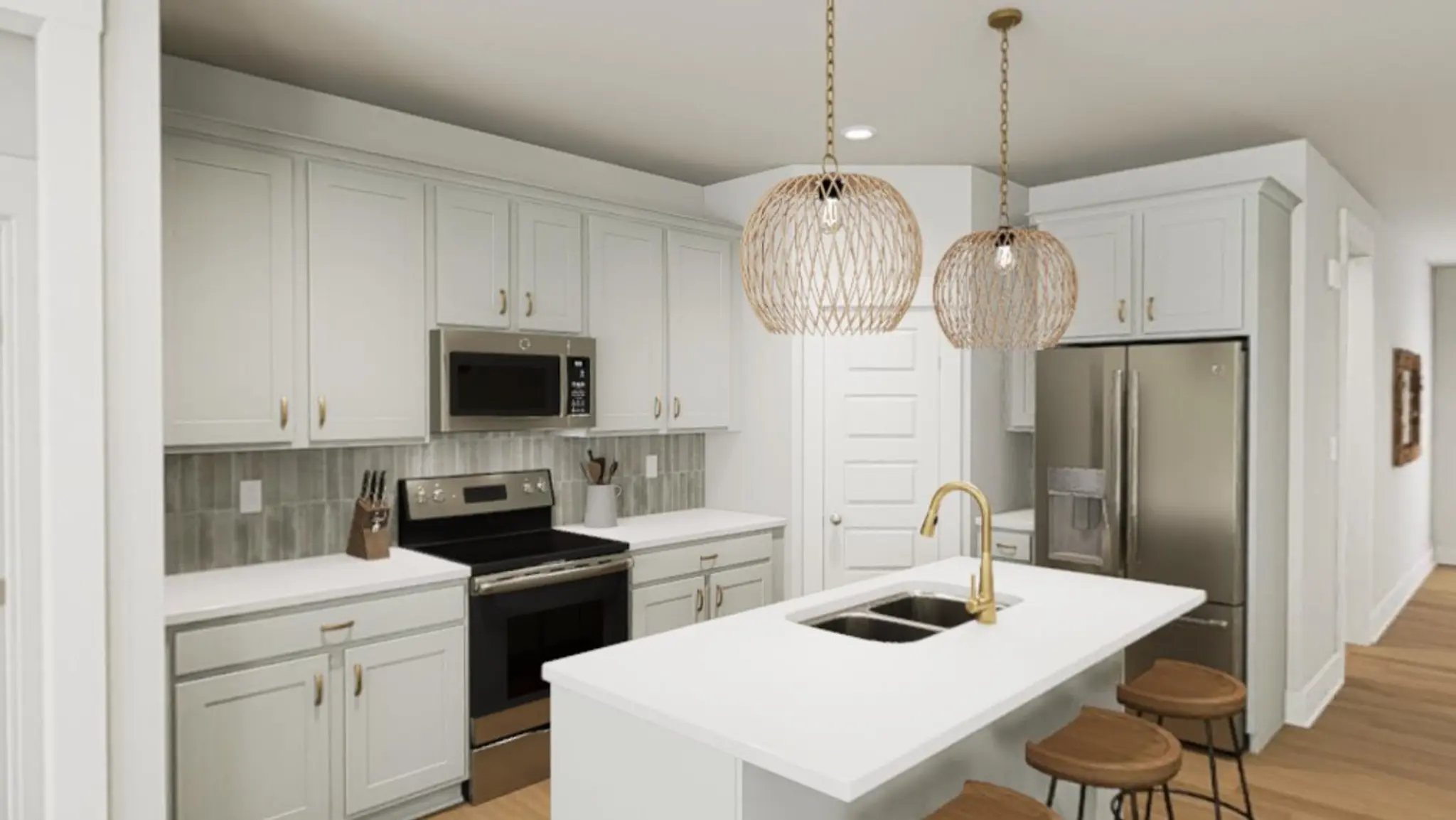 Tucked quietly in the rear, the spa-inspired primary suite becomes your personal retreat, now elevated with a spa bath upgrade that includes a ceramic tile shower and shower niche, bathtub, and soft, earthy tile selections that feel like a breath of ocean air. Hardwood soft-close kitchen drawers, under-cabinet lighting, and luxury vinyl plank extending throughout the first floor and into the primary bedroom add just the right touch of ease and elegance.