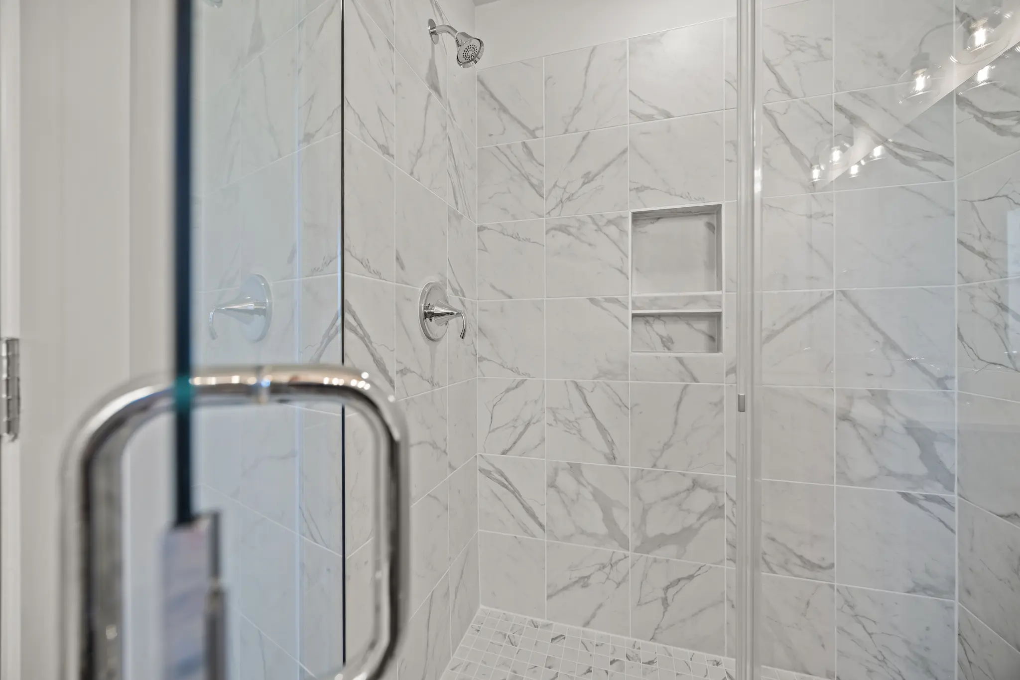 Upstairs, the primary suite offers a spacious walk-in closet and a tiled shower with a built-in niche. Two additional bedrooms and a full bath give everyone their own space, while the laundry closet with included stackable washer and dryer keeps routines simple.