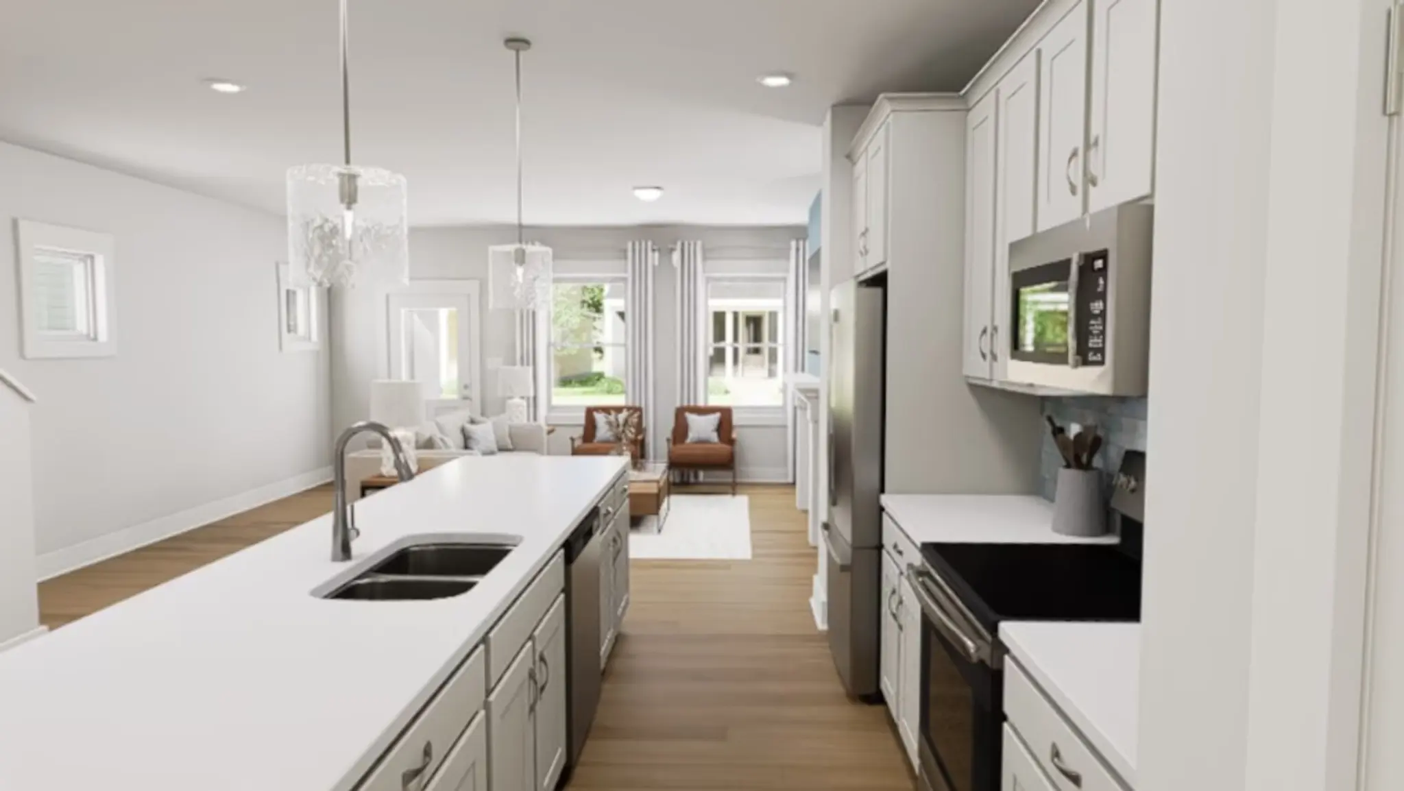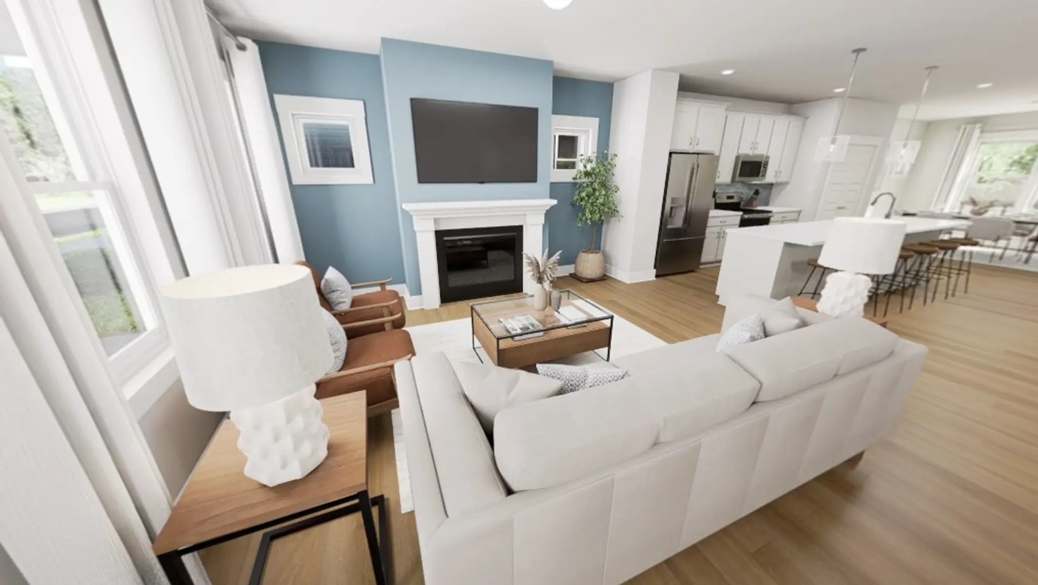 Inside, the heart of the home shines with a kitchen featuring soft-close drawers, quartz countertops, a gas range, and a stylish tile backsplash, all centered around a spacious island perfect for late-night snacks or early-morning homework help. The family room glows with natural light and a cozy fireplace for gathering on cool nights, while the luxury vinyl plank extends through the main living areas and up the stairs adds durability and sophistication.