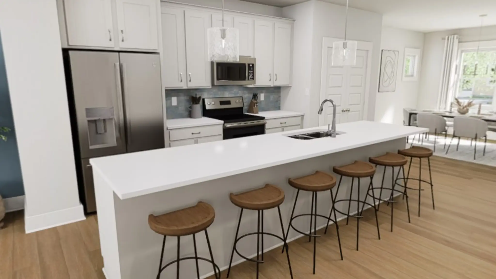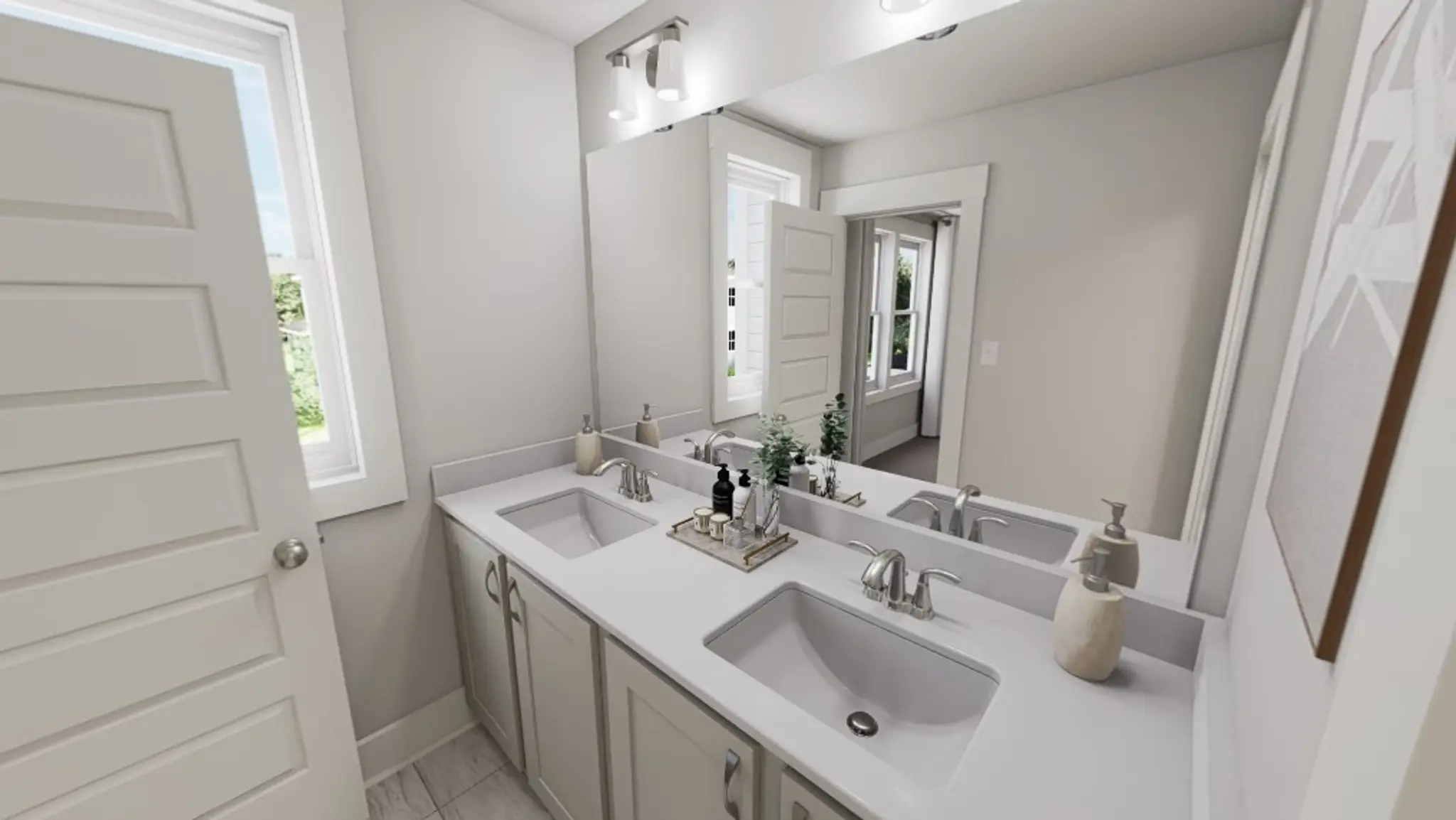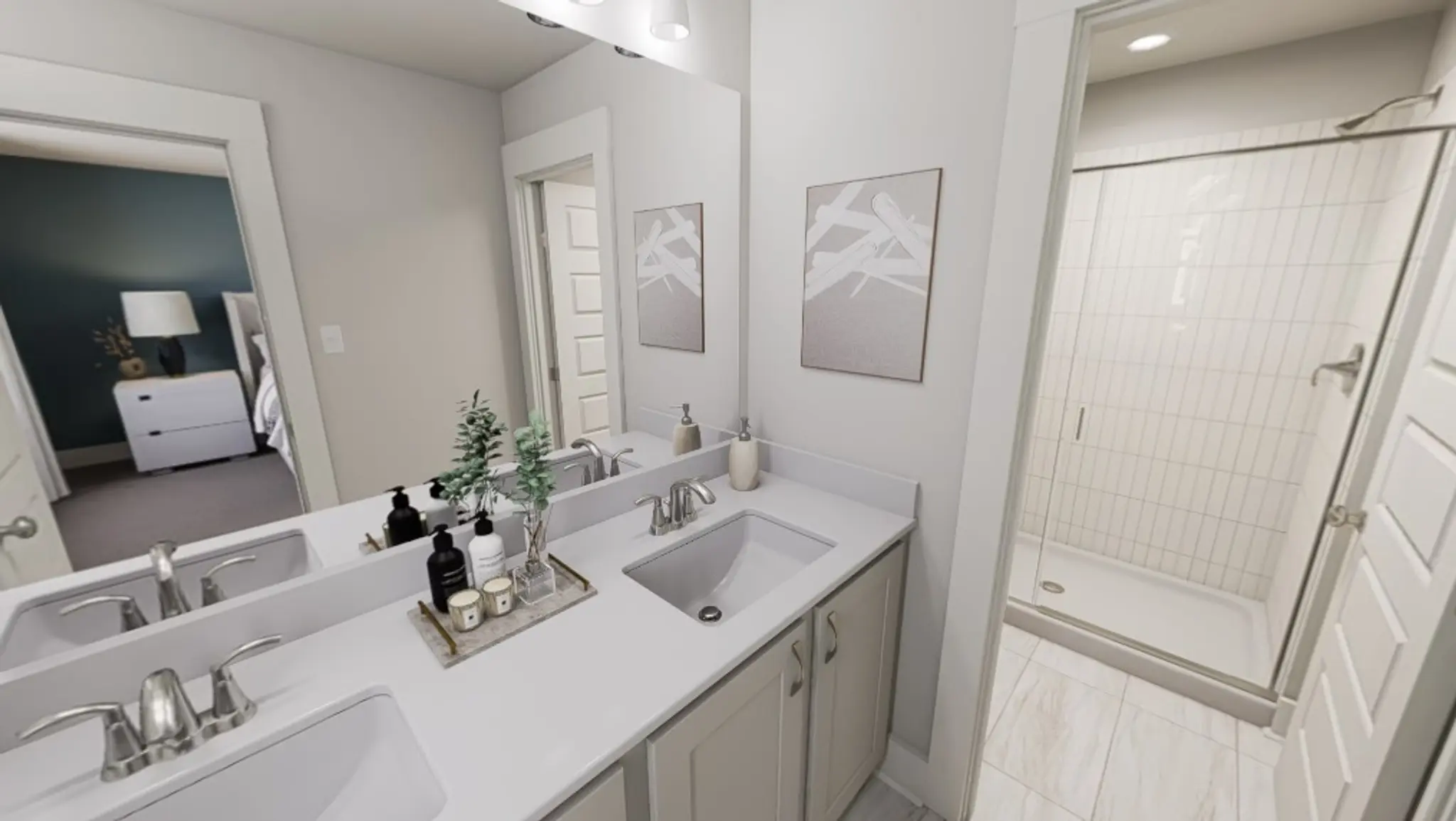 Upstairs, a serene primary suite offers double walk-in closets and a spa-inspired bathroom complete with dual sinks and chrome fixtures. Two additional bedrooms and a shared bath with an added second sink make mornings smoother for everyone. While a two-car attached garage and curated storage solutions ensure everything has its place. This home is more than stylish, it’s soulful, ready to be filled with memories, laughter, and everyday magic.
