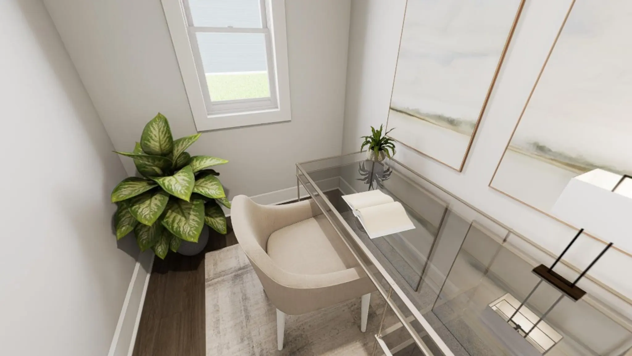 The Blue Satin Sashes plan opens with clean lines and a balanced look inspired by the Yin & Yang interior package.
