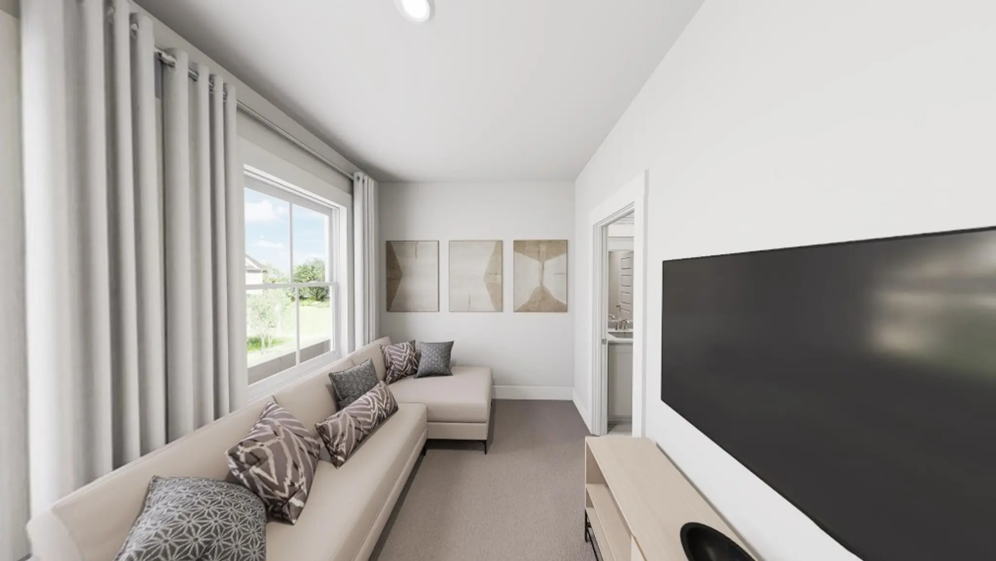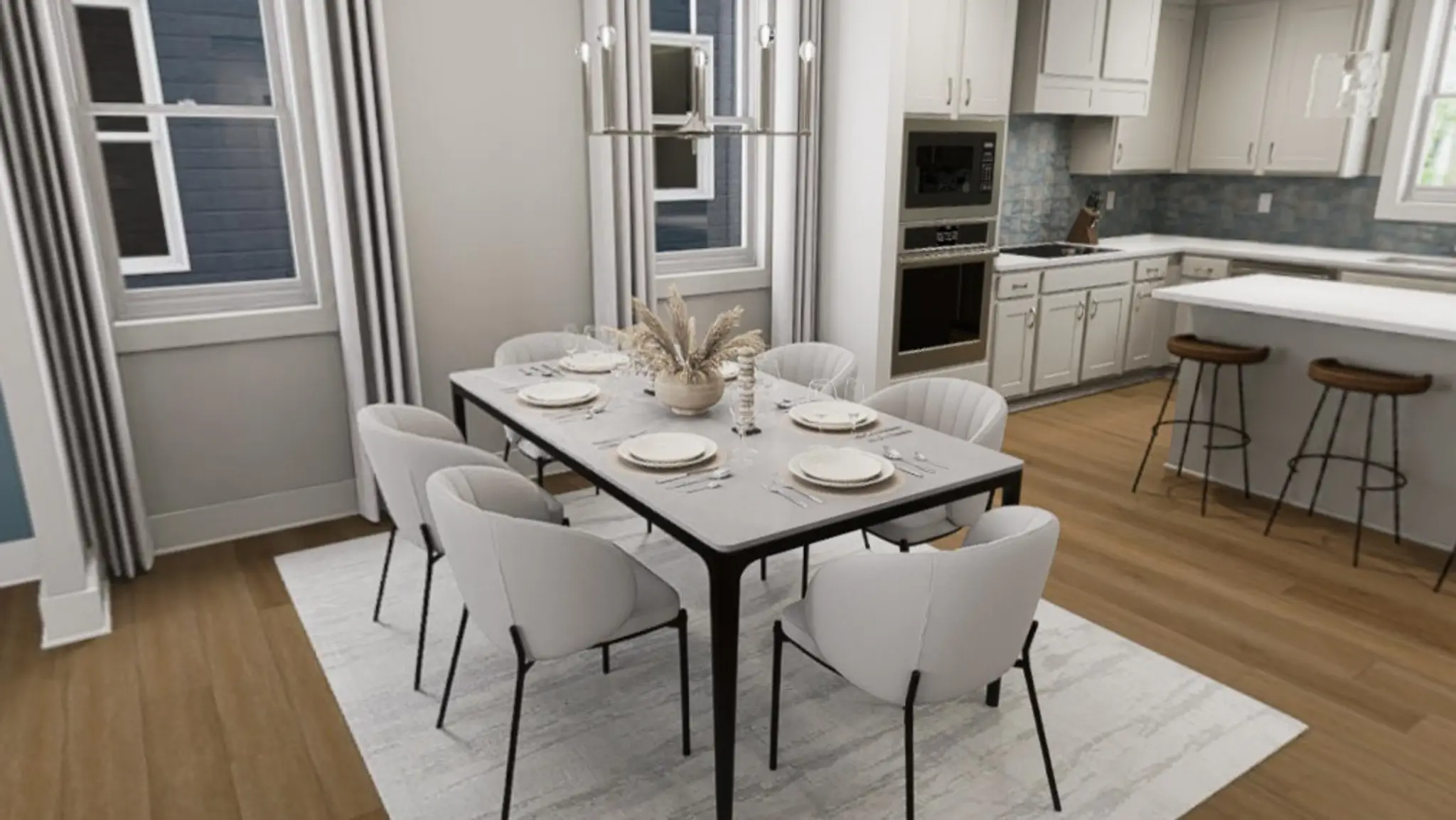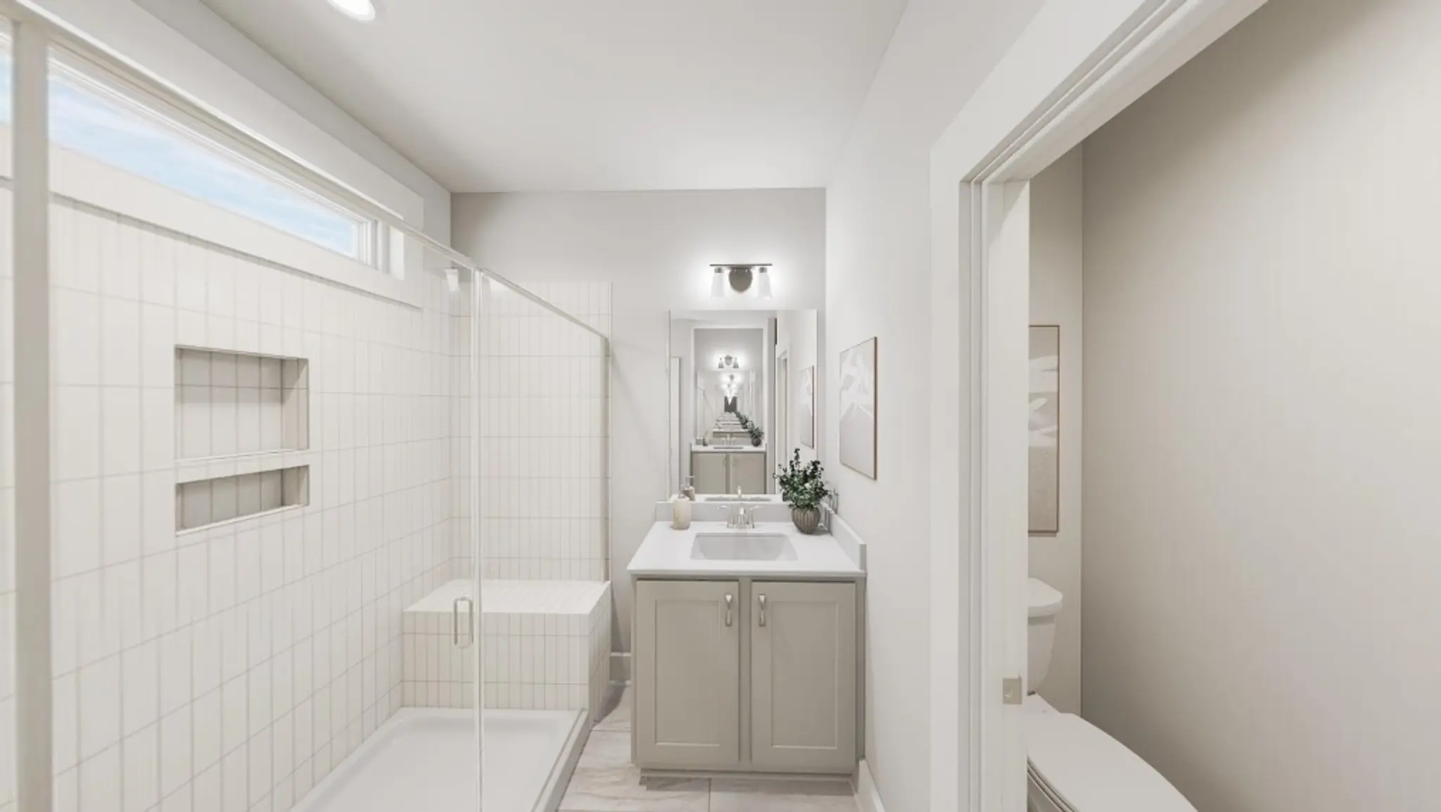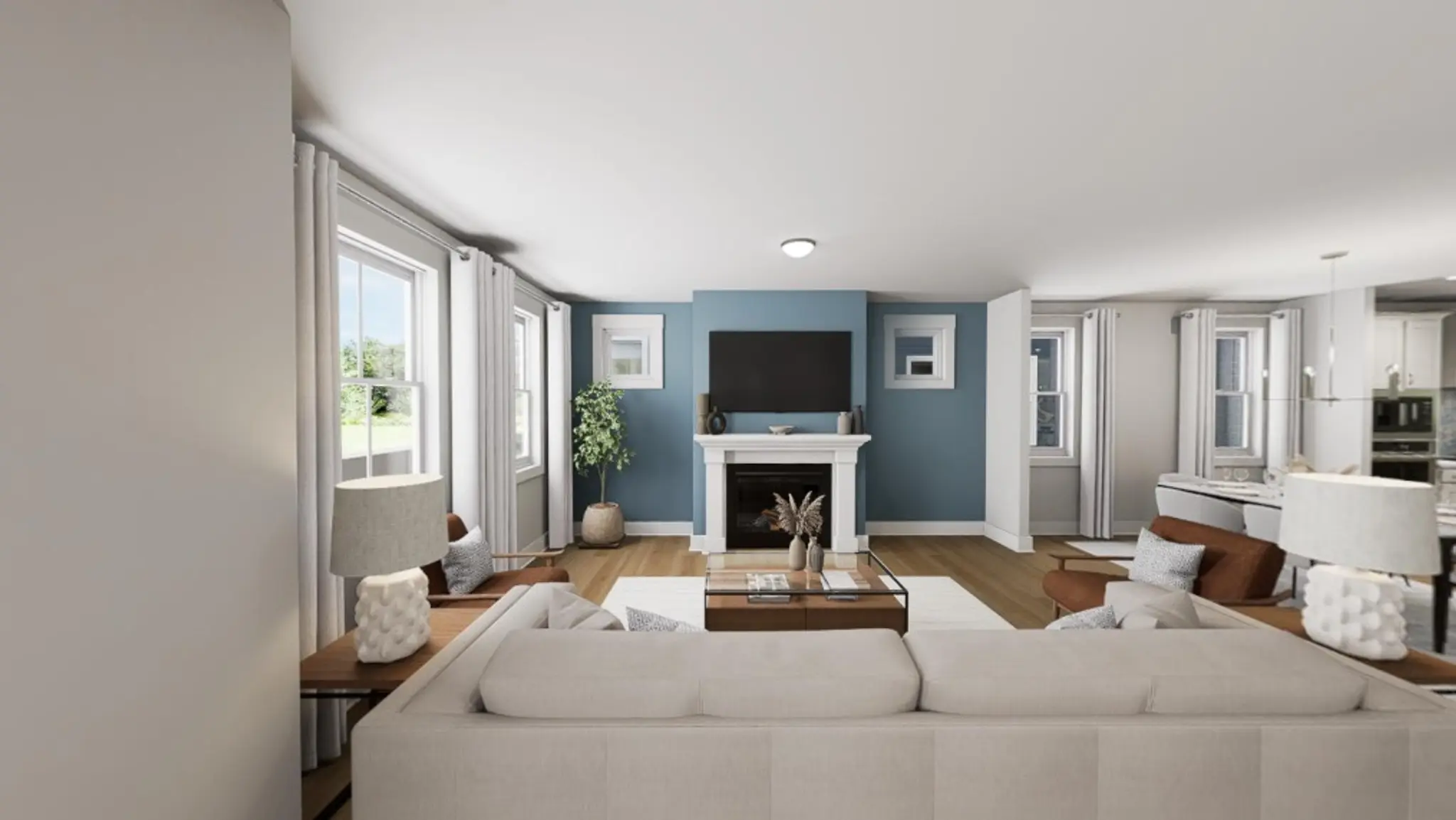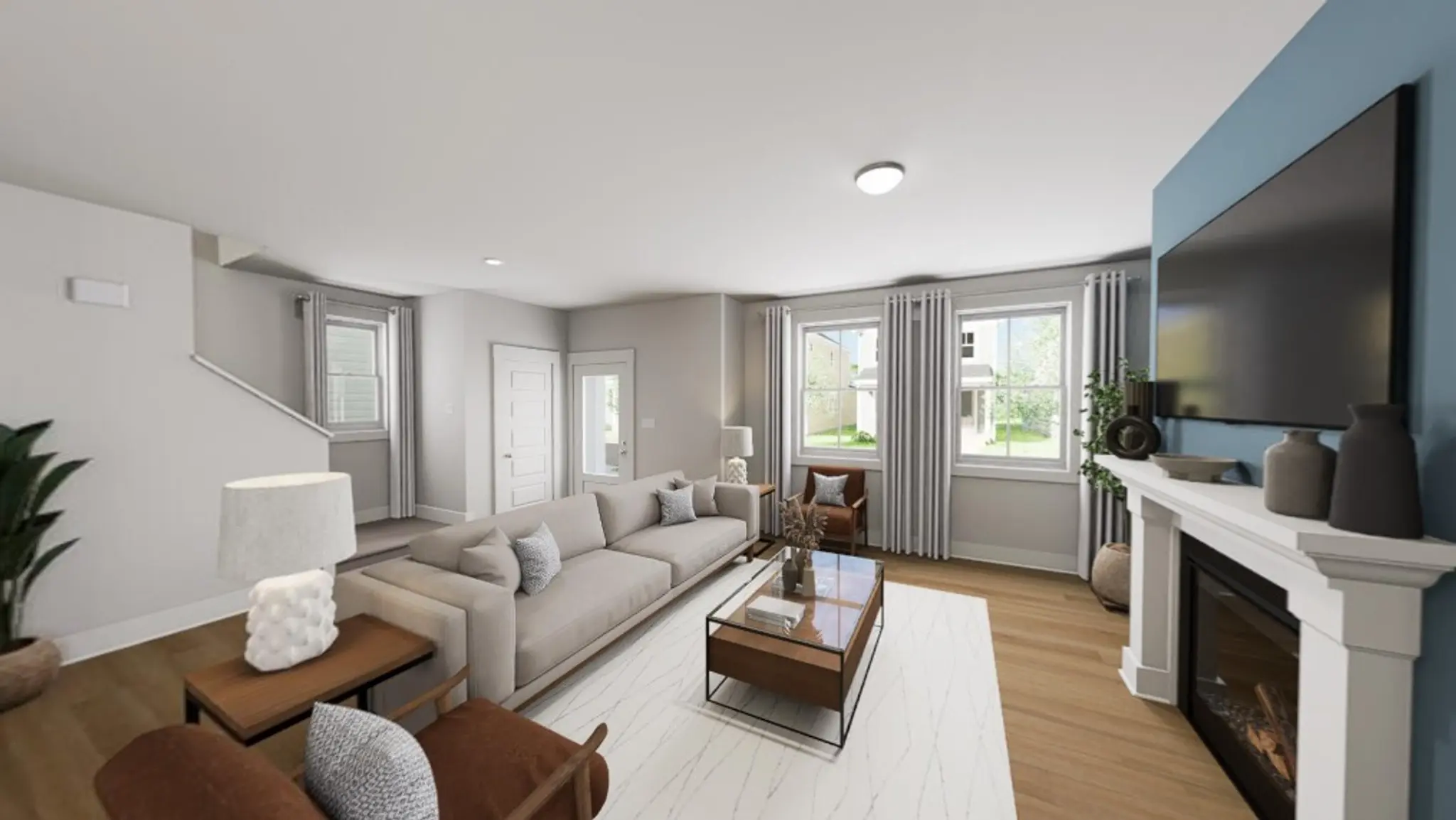 Settle into Southern charm with the Southbound Train, a home that sings of connection, comfort, and calm. As you step through the front door, a wide-open main floor welcomes you with clear sightlines from front to back, where transom windows bathe the space in golden light. A cozy fireplace invites movie nights and slow Sunday mornings, while the gourmet kitchen outfitted with sleek quartz countertops, soft-close drawers, and a chic tile, makes every meal feel like a celebration. Extend the party outdoors with a covered porch that spans the entire width of the house.