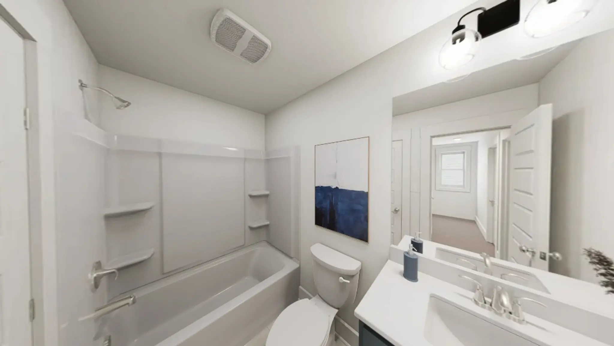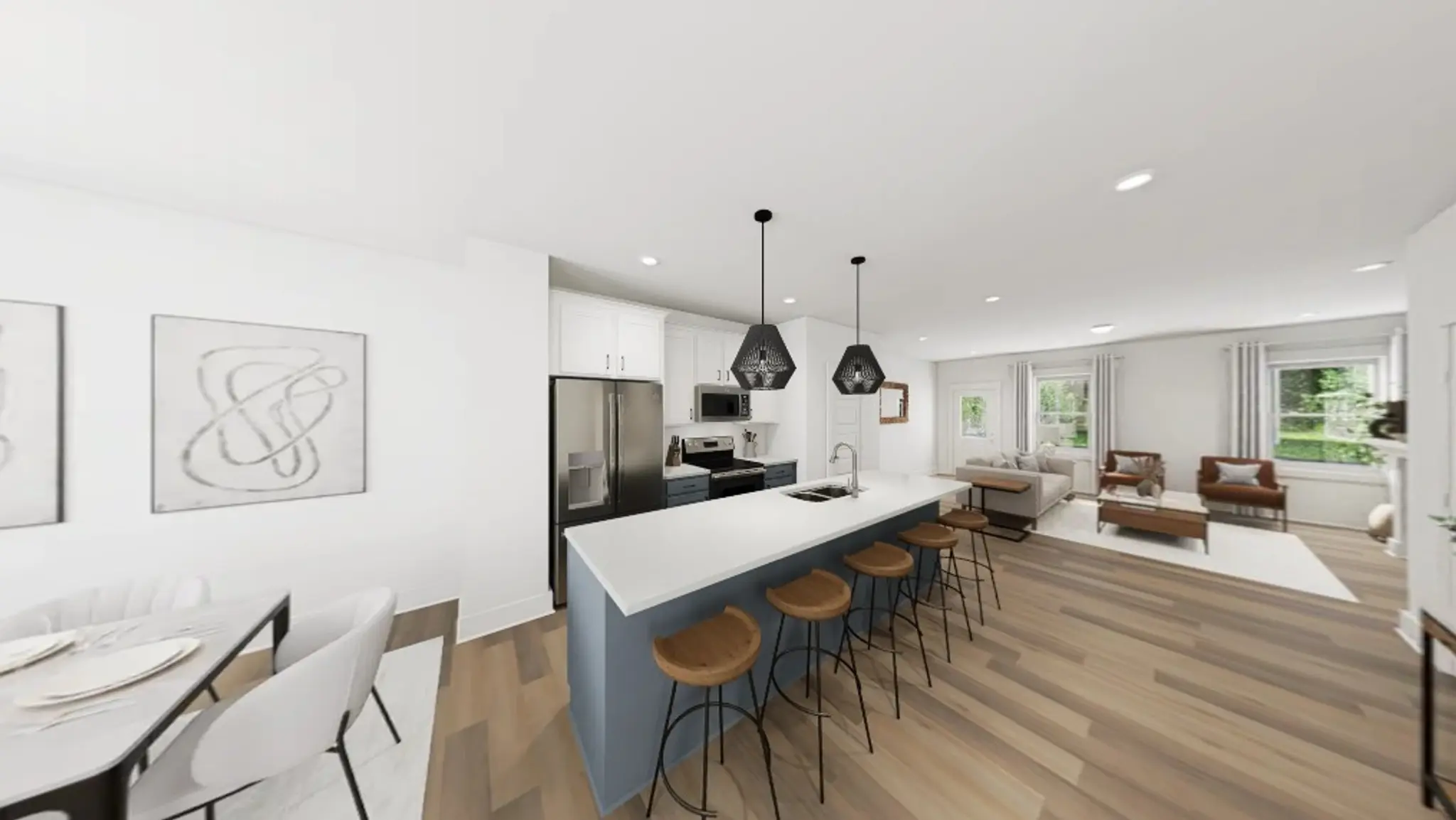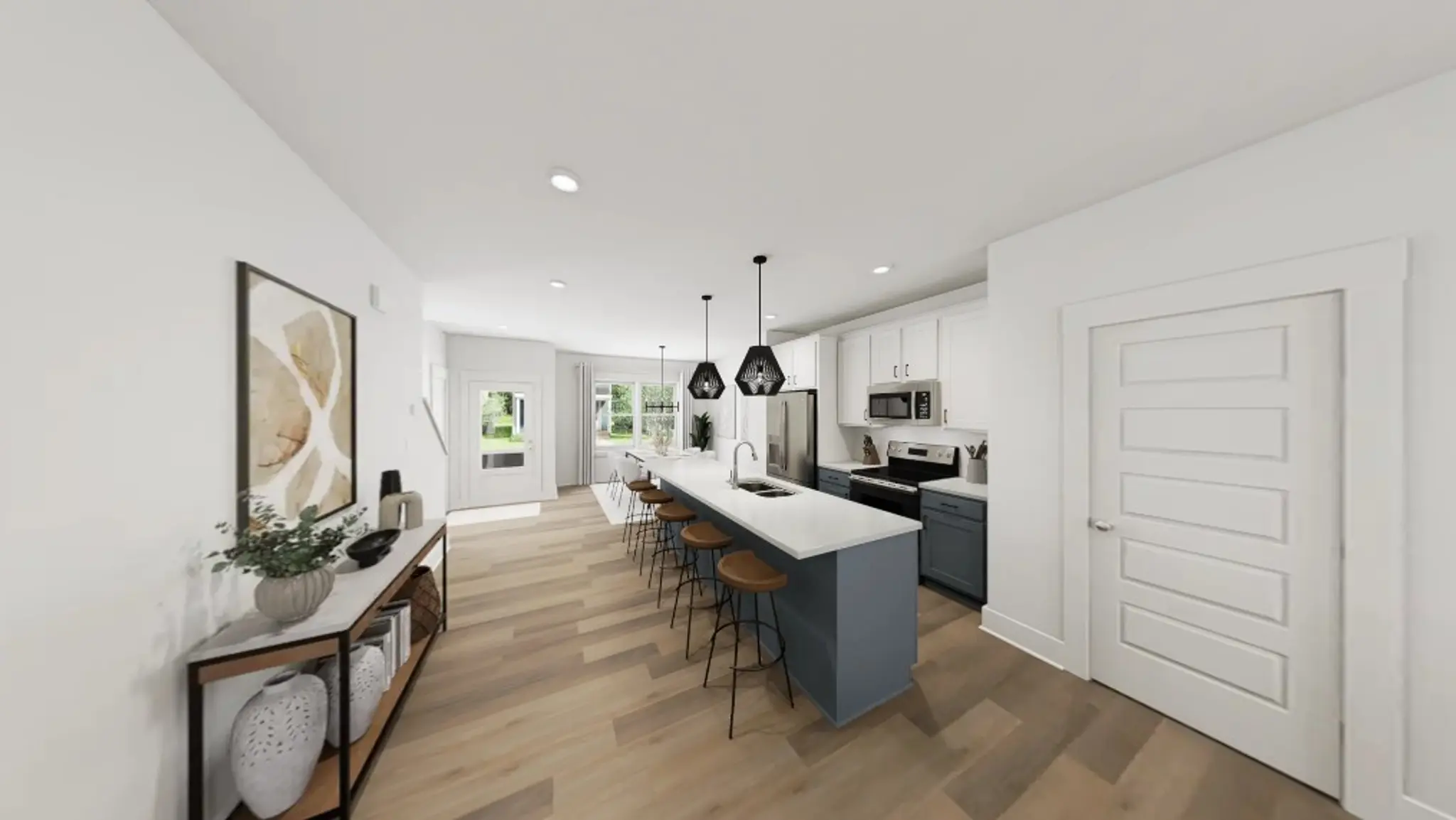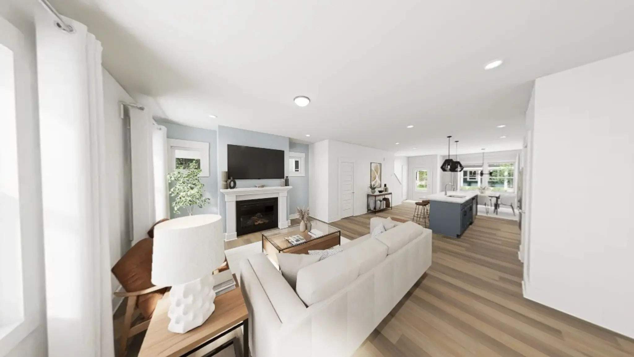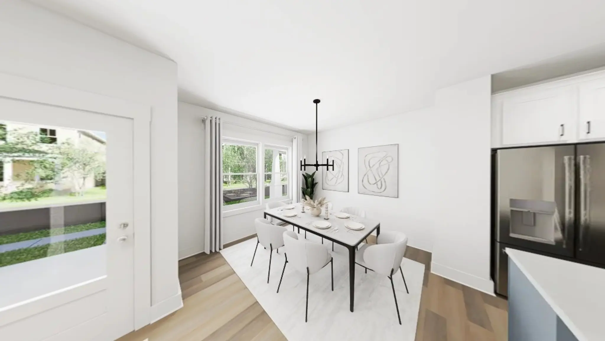 On the main floor, an oversized island anchors a thoughtfully curated kitchen, featuring Arctic cabinetry, gleaming white quartz countertops, and a striking metallic backsplash. Whether you're entertaining in the light-filled family room beneath upgraded transom windows and direct-vent fireplace or enjoying a quiet morning at the front dining nook, this home offers comfort in every corner. Upstairs, a spacious primary suite is your personal retreat, complete with double vanities, sleek black hardware, and a spa-inspired tile shower. This home comes complete with an included stackable washer and dryer - because the last thing you should be worrying about on move-in day is laundry.